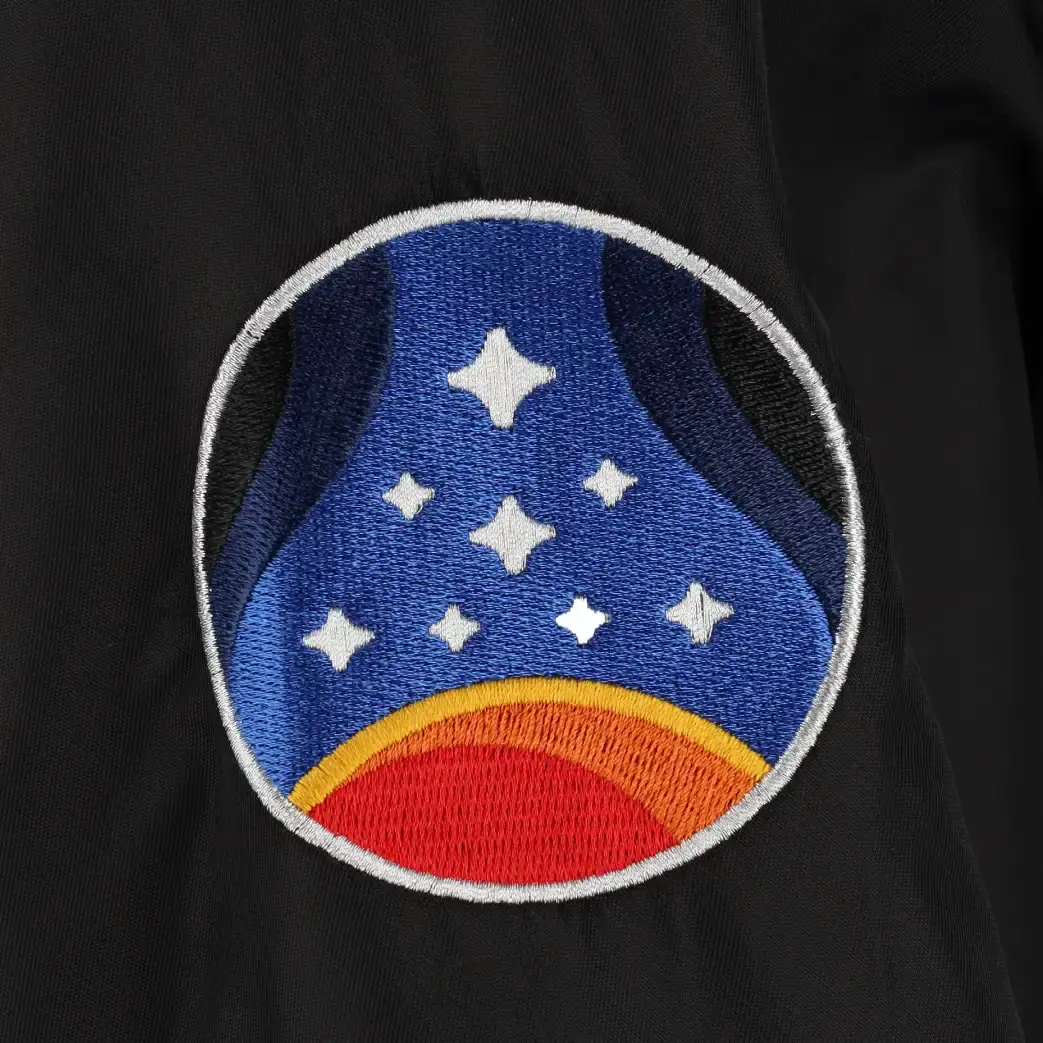 Bethesda had a specific bomber jacket in mind, but after searching for the right style we realized this would need to be built from the ground up to get the look they wanted. With the launch date looming, our Kotis Custom sourcing team kicked into gear with developing the specific flight jacket style, customizing the fit, and adding a slew of decoration details like a reflective full back print. A special set of jackets also received individually embroidered gamer tags on the right chest for an extra level of personalization… and flight jacket status.
